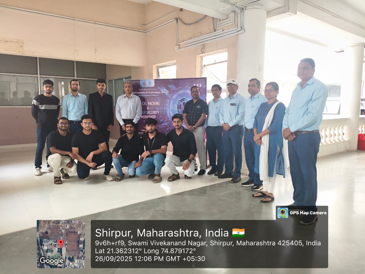 Department of Computer Engineering, RCPIT Shirpur We are proud to announce the successful organization of a Two-Day Workshop on Ethical Hacking and Cyber Security conducted by the Department of Computer Engineering and the Cyber Security Cell on 26th & 27th September 2025 under the esteemed guidance of: Prof. Dr. J. B. Patil – Director, RCPIT, Prof. Dr. P. J. Deore – Dy. Director, RCPIT, Prof. Dr. R. B. Wagh – HOD, Computer Engineering, Prof. J. S. Sonawane – Workshop Co-ordinator, Prof. V. S. Thakare – Workshop Co-ordinator, Prof. A. S. Chaudhari – Workshop Co-ordinator, The Workshop covered fundamentals of Cyber threats, Data protection techniques, and Hands-on sessions on Ethical Hacking tools and practices, enabling participants to gain real-time exposure to cybersecurity challenges.