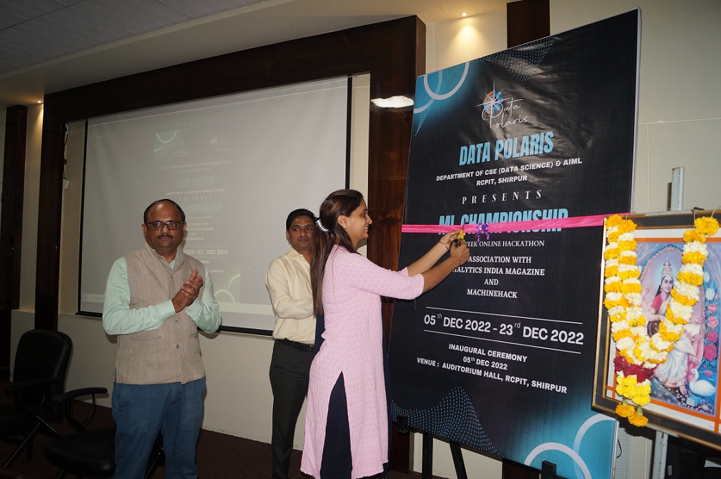 RCPIT’s CSE(Data Science) & AIML Department’s official club 'Data Polaris' organized a 3-week online hackathon named ML Championship in association with Analytics India Magazine and MachineHack. The results were announced in the prize distribution ceremony. The top 3 winners got a free MachineHack premium subscription for 1 year worth 15,000 INR, certificates, and goodies from AIM and MachineHack.